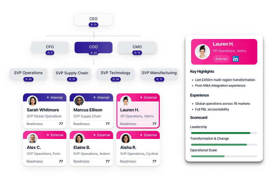 Visualise the external talent market in real time, benchmark your organisation against it and plan succession with confidence.